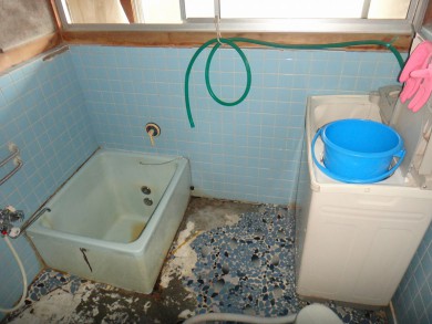 浴室が古く、床のタイルもだいぶ